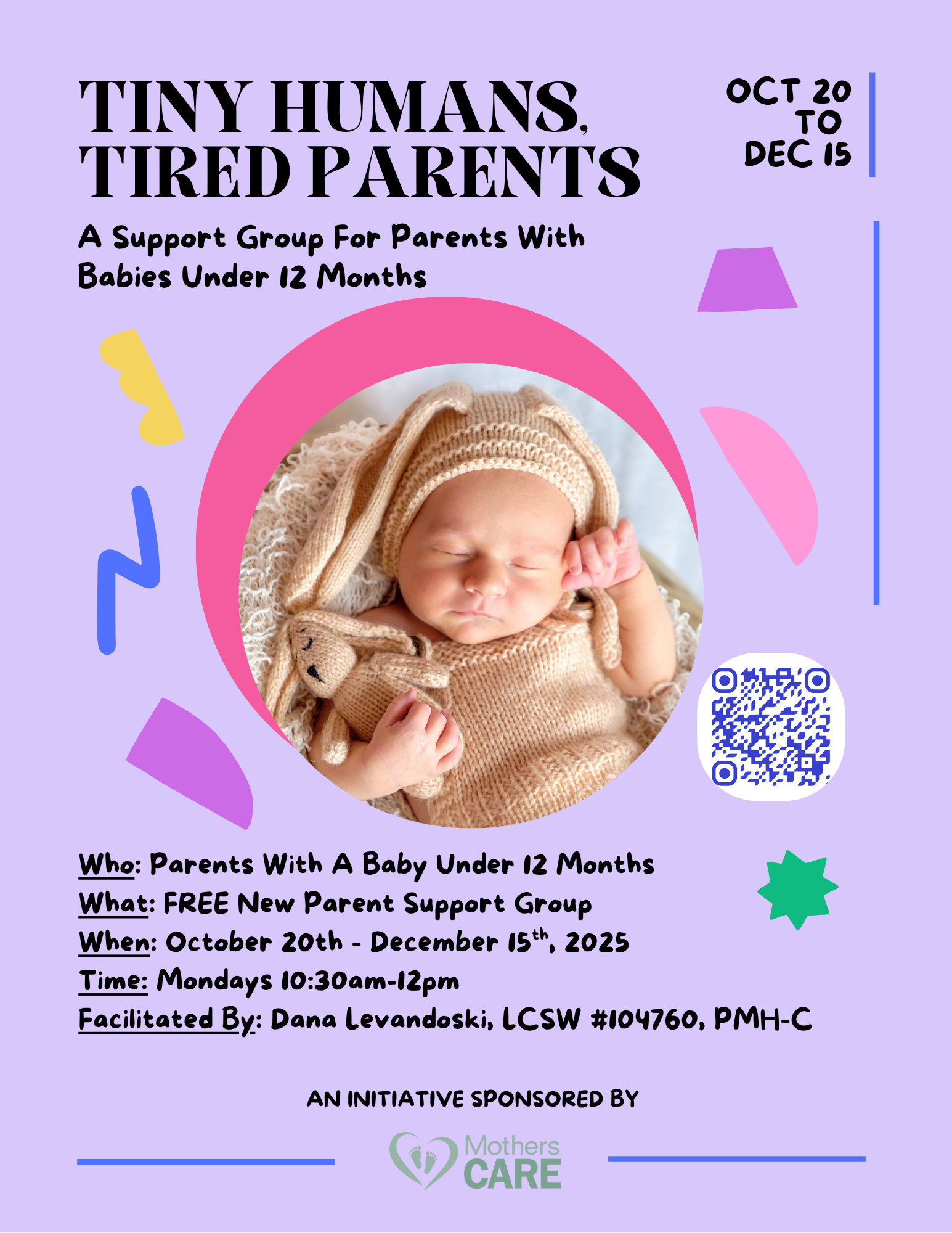 It’s for new parents with babies under 12 months.Whether you’re a first-time parent or this isn’t your first rodeo, please join us!. We welcome mothers fathers, all identities, family structures, and lived experiences.